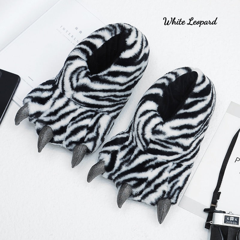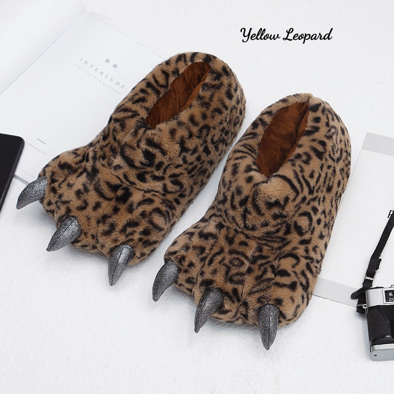 Cute Animal Paw Plush Slippers – Warm Full-Heel Indoor Shoes for Couples