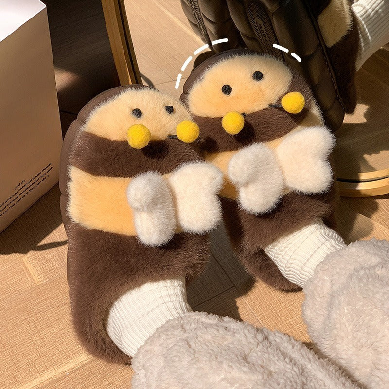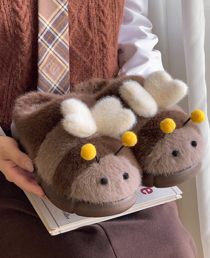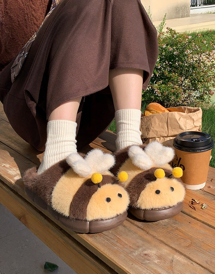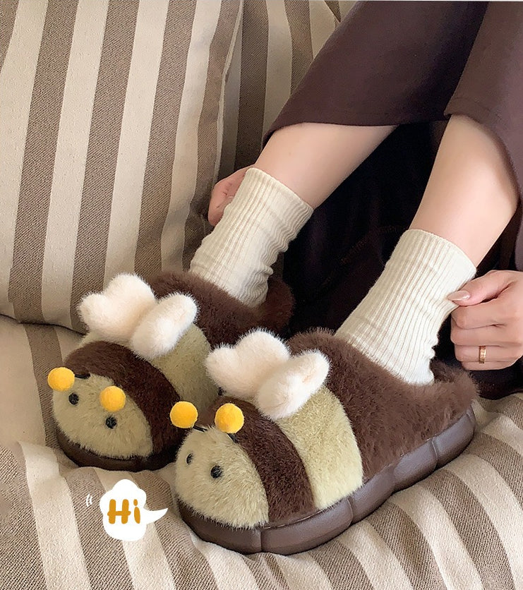 Cute Bumblebee Plush Slippers – Warm Thick-Sole Indoor/Outdoor Shoes