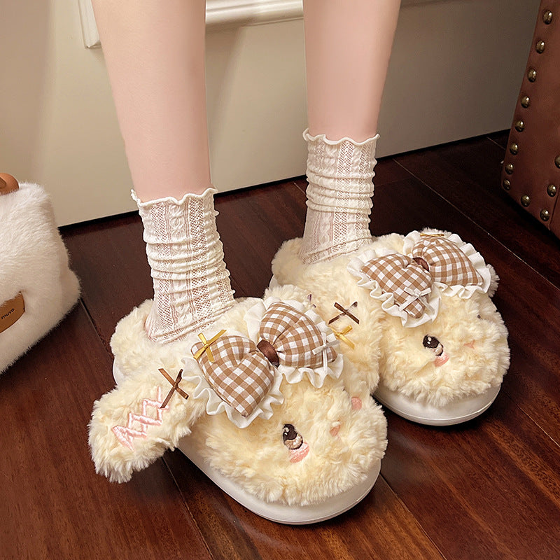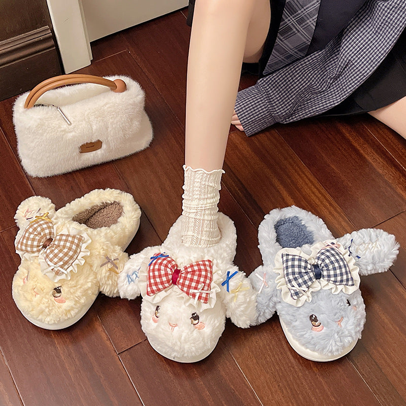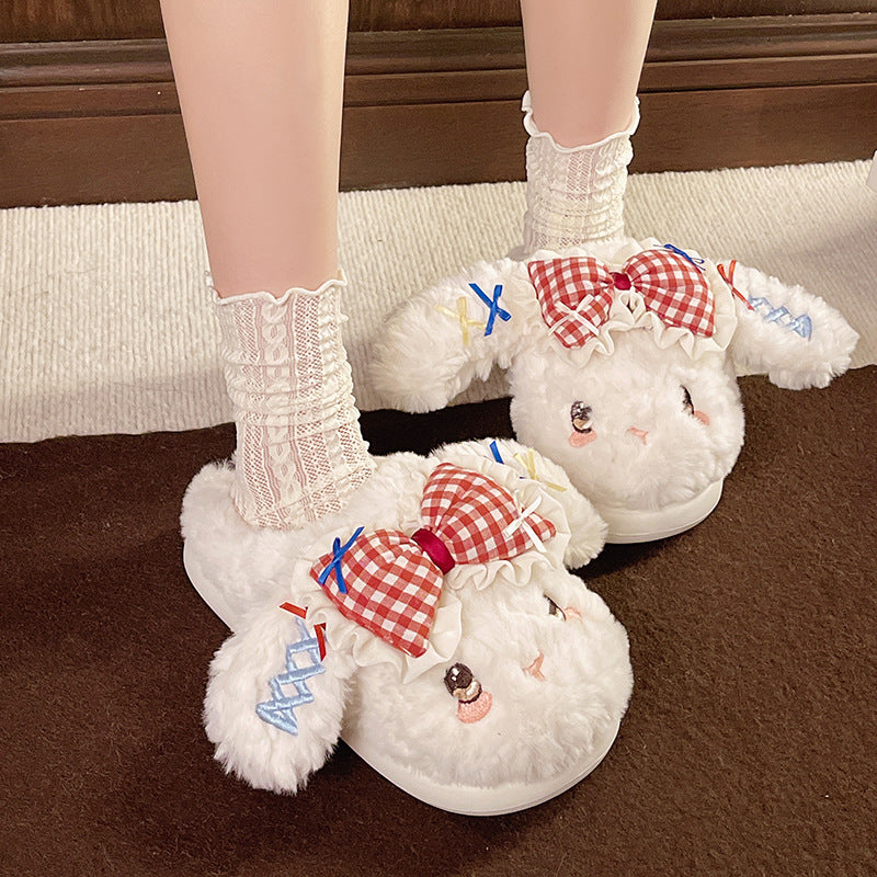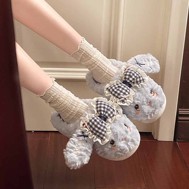 🐰 Adorable Bunny & Bow Design: Cute, girly style perfect for fall and winter home wear.