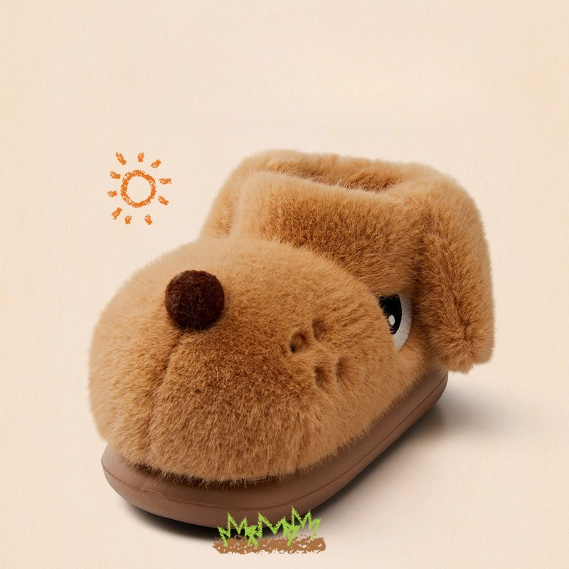 Cute Dog Plush Slippers – Warm Full-Heel Indoor & Outdoor Non-Slip House Shoes for Women & Couples