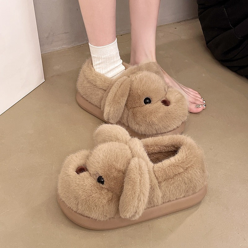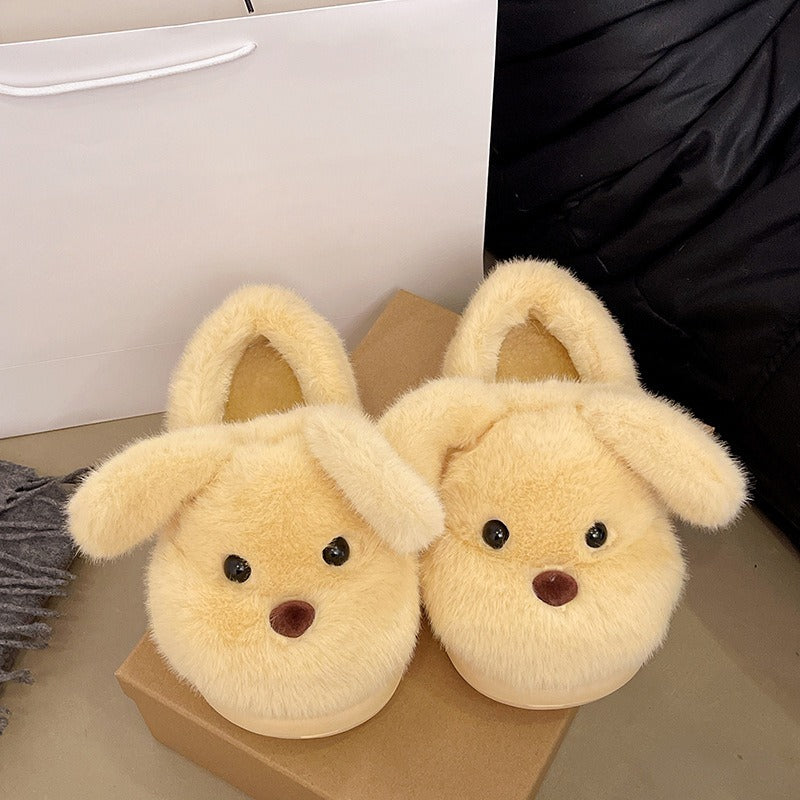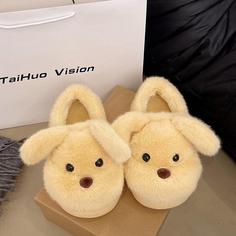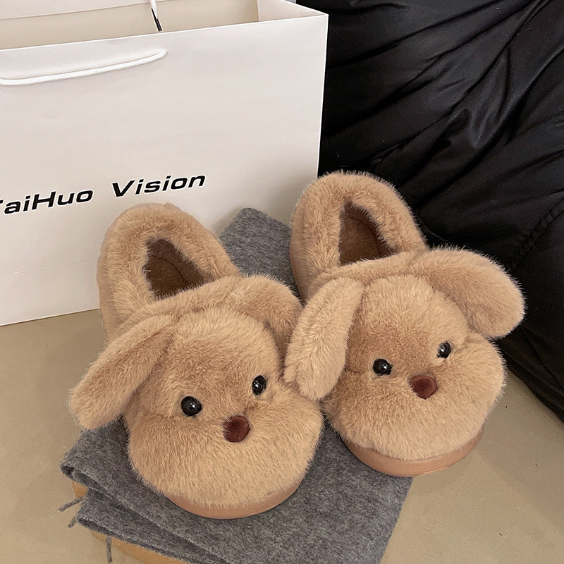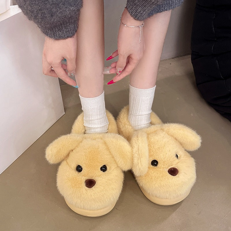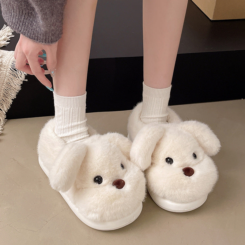 Cute Dog Plush Slippers for Women – Warm Full-Toe Indoor & Outdoor Comfort Shoes