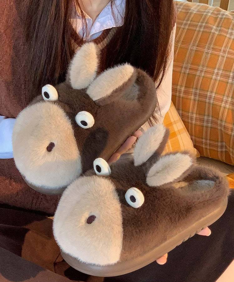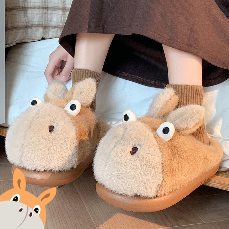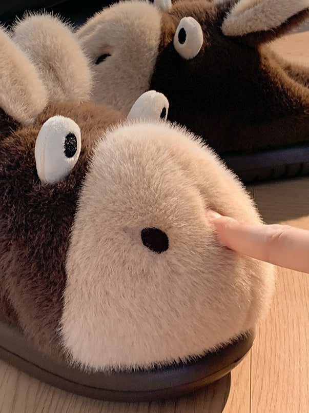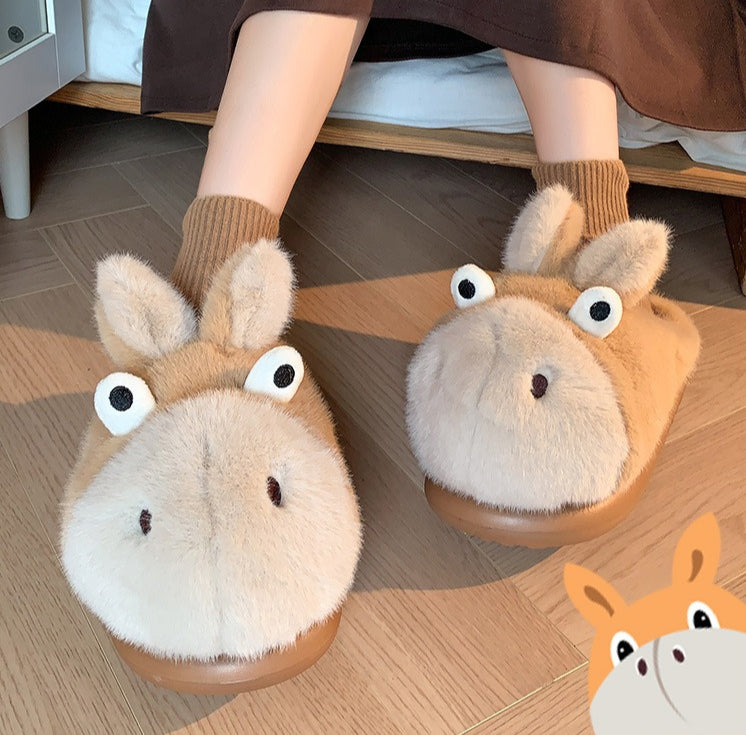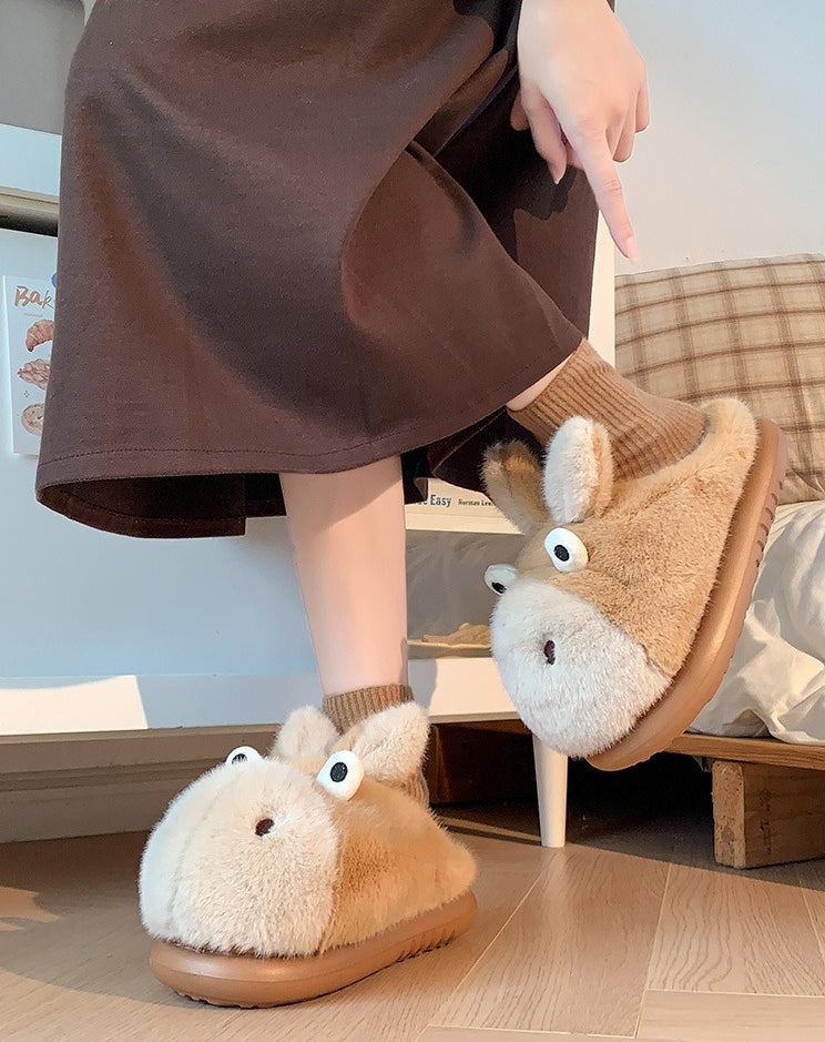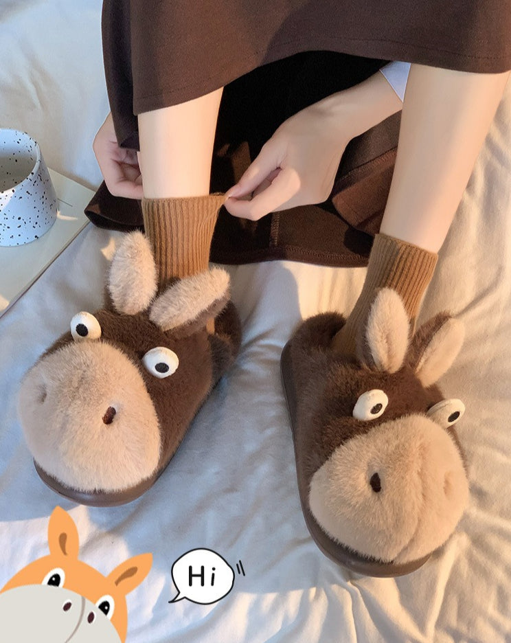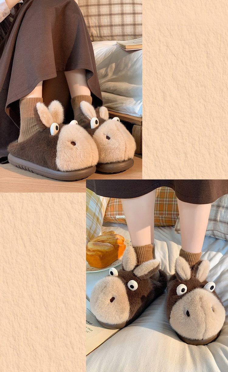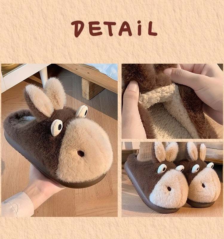Cute Donkey Plush Slippers – Warm Thick-Sole Indoor/Outdoor Winter Shoes for Couples