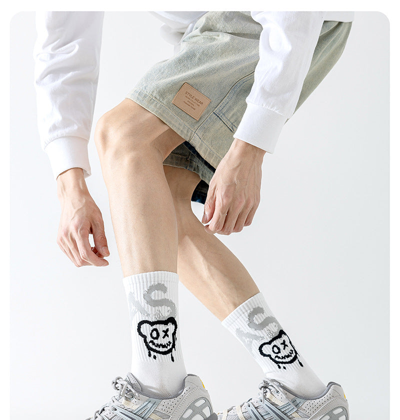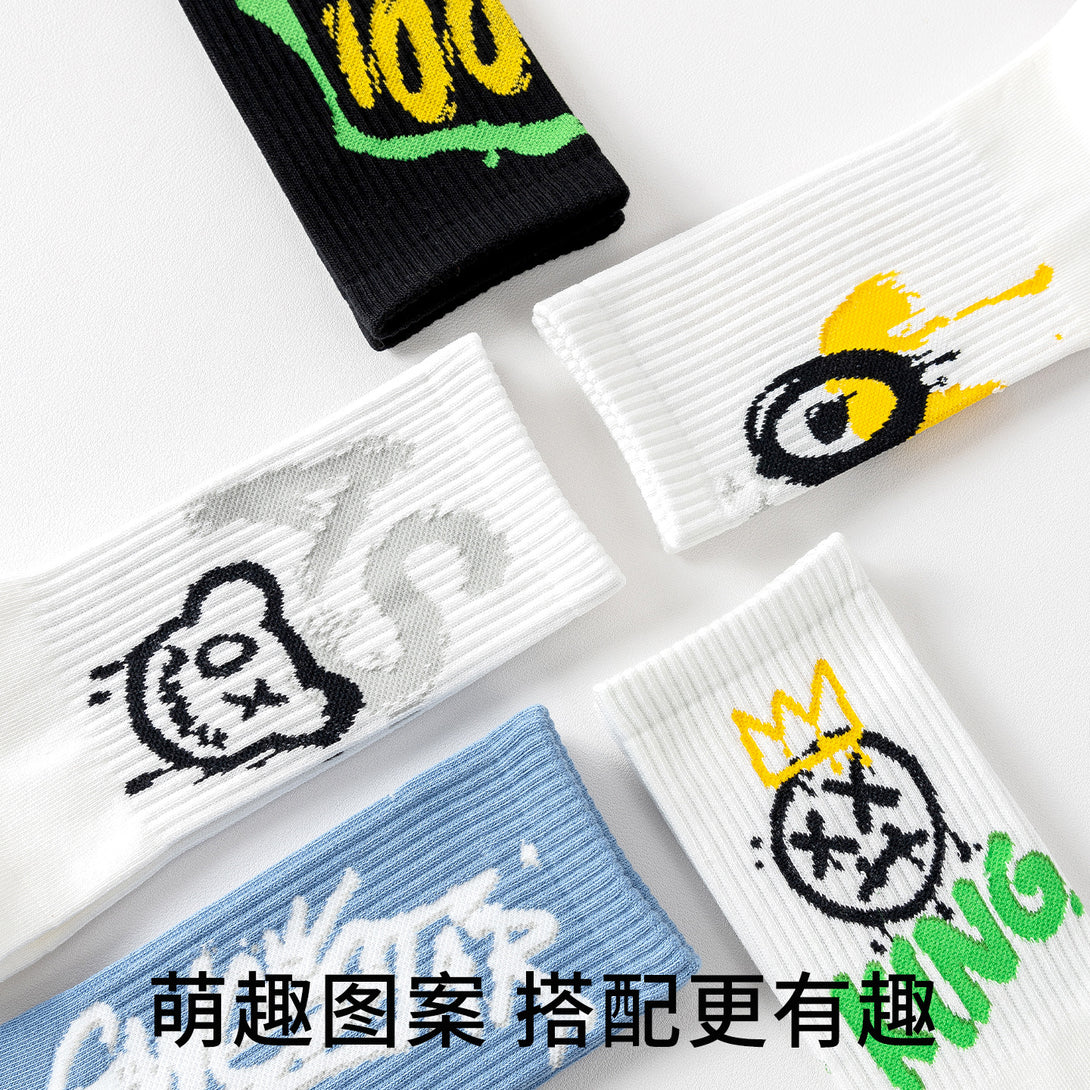 Men’s Seamless Cotton Crew Socks – Breathable Odor-Control Graffiti Style Everyday Socks